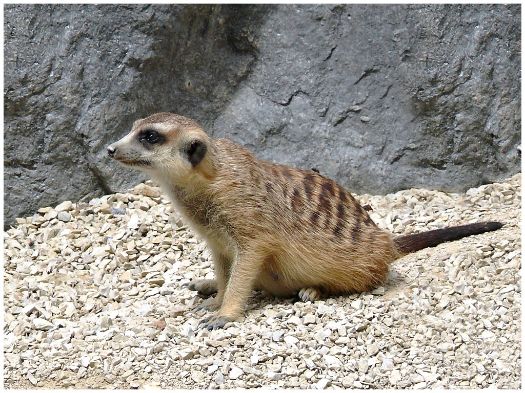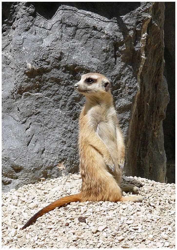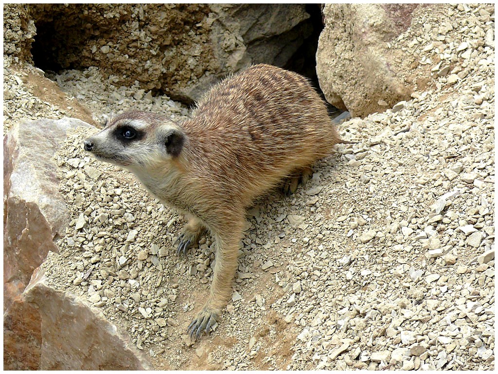 Mesurant de 26 à 38 cms, le suricate mange entre autres des insectes, des petits reptiles,
