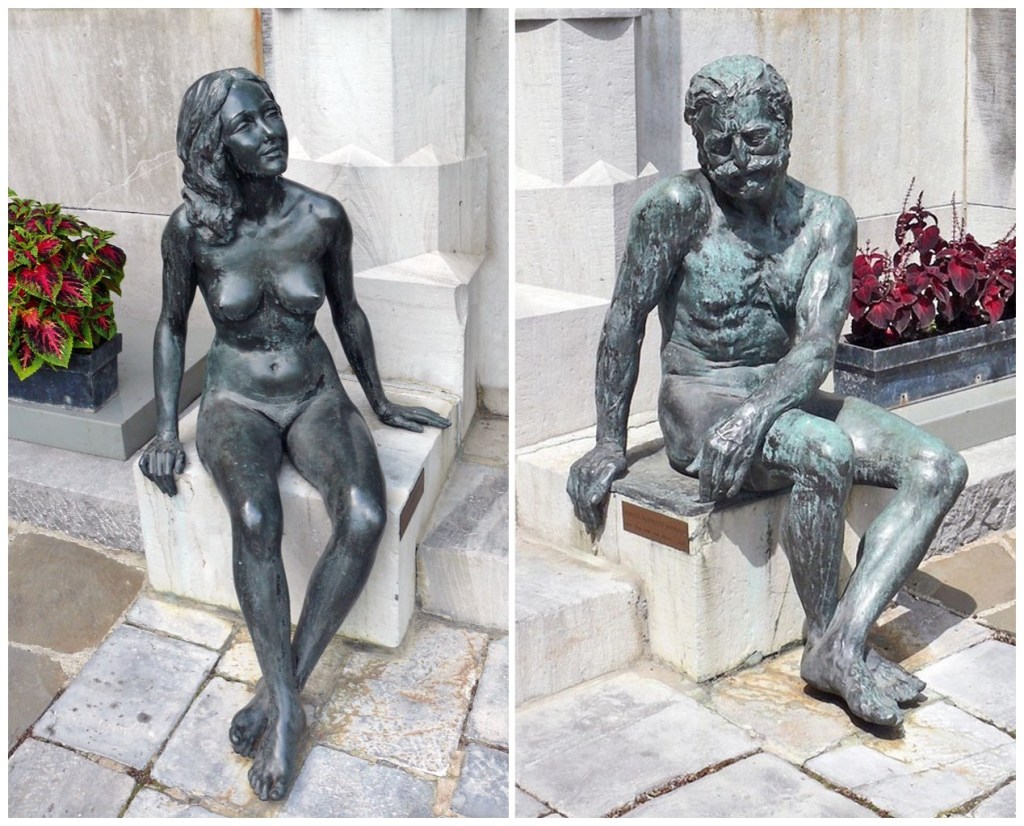 Avant de pénétrer dans le château,deux statues nous souhaitent la « Bienvenue ».