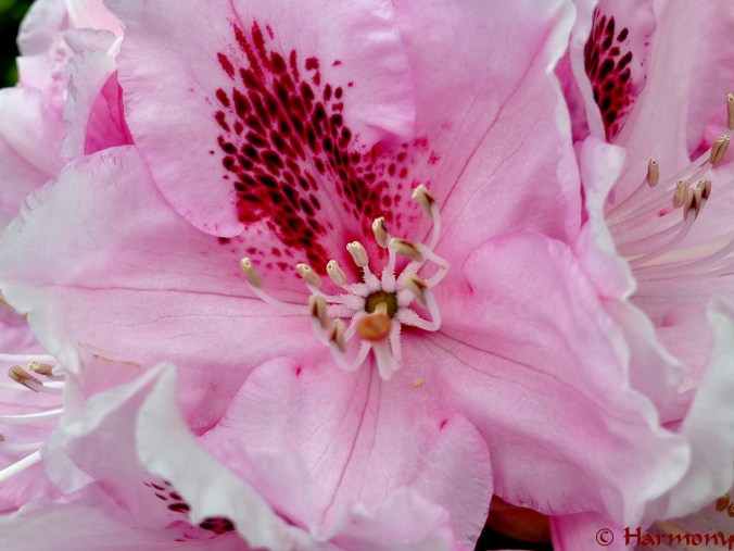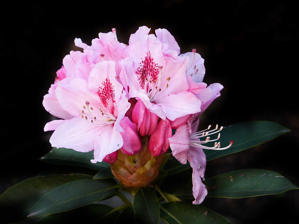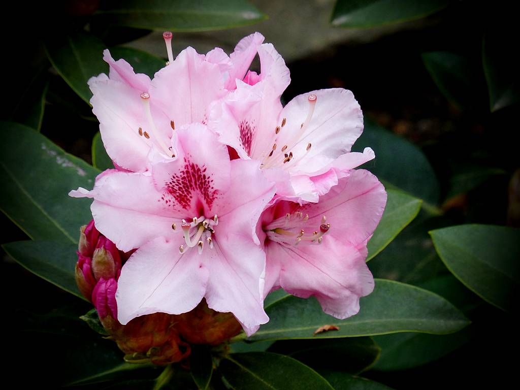 Ce rhododendron « Albert Schweitzer » ,bien vigoureux,offre des fleurs rose pâle à gorge rose foncé à brun-rouge, issues de boutons roses. Il pousse assez vite et tolère le soleil non brûlant à condition que le sol soit frais. Ce rhododendron a reçu un Award of Garden Merit de la Royal Horticultural Society (RHS) en 2002.