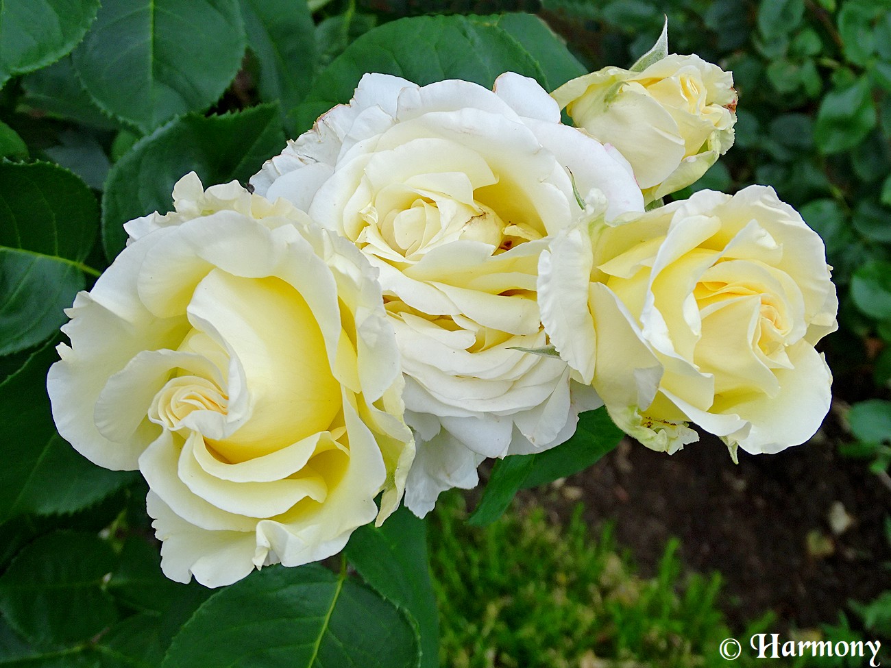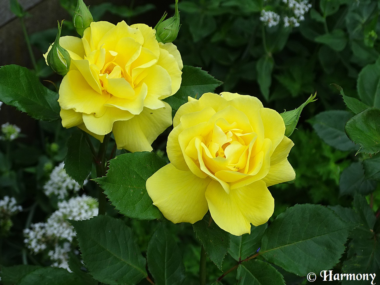 Ce rosier exhibe de nombreux bouquets de corolles ébouriffées, jaune abricoté,