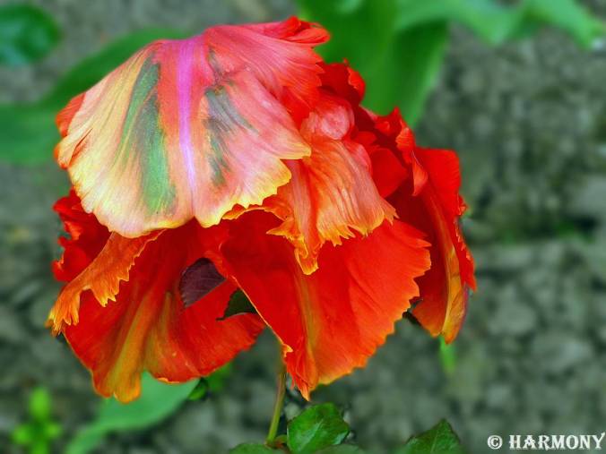 Les tulipes perroquet sont des plantes tout à fait uniques, issues d’un travail de sélection doublé d’un procédé d’obtention complexe, leur principale caractéristique est de présenter des fleurs aux pétales tordus, boursoufflés, ébouriffés, irrégulièrement frangés. Elles mêlent sur leurs corolles des couleurs panachées, baroques ou raffinées, qui ne peuvent laisser indifférent. D’ordinaire à floraison tardive, en mai-juin, elles développent de longues tiges, pas toujours droites chez les anciennes variétés, et célèbrent en grandes pompes la fin de la saison des tulipes.