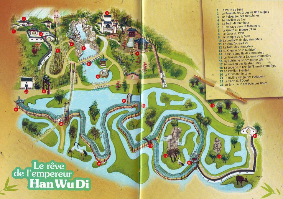 îles,des pavillons,une myriade de végétaux,un jeu