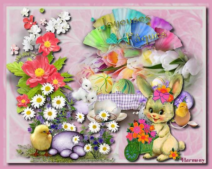 JOYEUSES PÂQUES 18 avril 20145 juin 2015 / Harmony / 21 Commentaires A la veille du Week-End Pascal,j’ai créé 2 montages plus grands que d’habitude. Profitez bien de ces quelques jours. Bonne Rentrée pour les Belges et Bonnes Vacances pour les Français. Ne mangez pas trop de chocolat,ce n’est pas bon pour le foie ni pour la ligne.Lol. Cliquer pour agrandir. Je vous les joins aussi en format carte postale. Partager : Cliquez pour partager sur Pinterest(ouvre dans une nouvelle fenêtre) Pinterest Cliquer pour imprimer(ouvre dans une nouvelle fenêtre) Imprimer Cliquer pour envoyer un lien par e-mail à un ami(ouvre dans une nouvelle fenêtre) E-mail J’aime chargement…